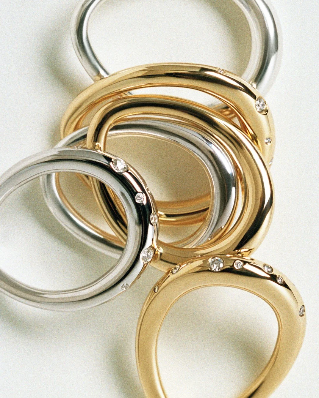 OFFSPRING Rings, 18k Yellow Gold & Sterling Silver. Designed by Jacqueline Rabun, courtesy of Georg Jensen.
