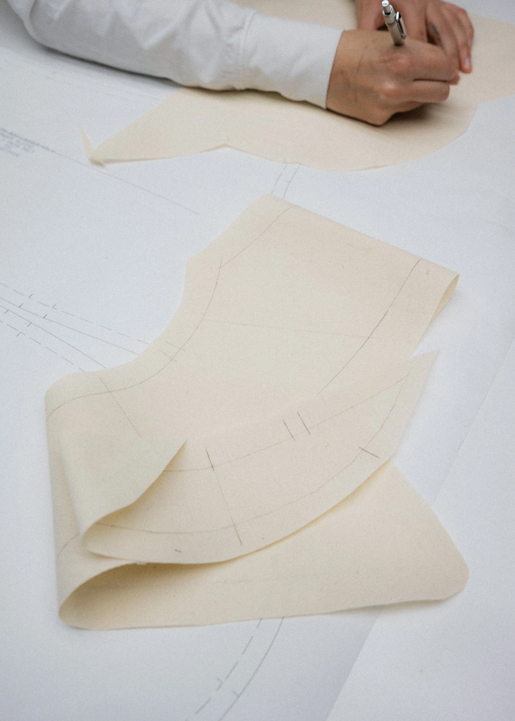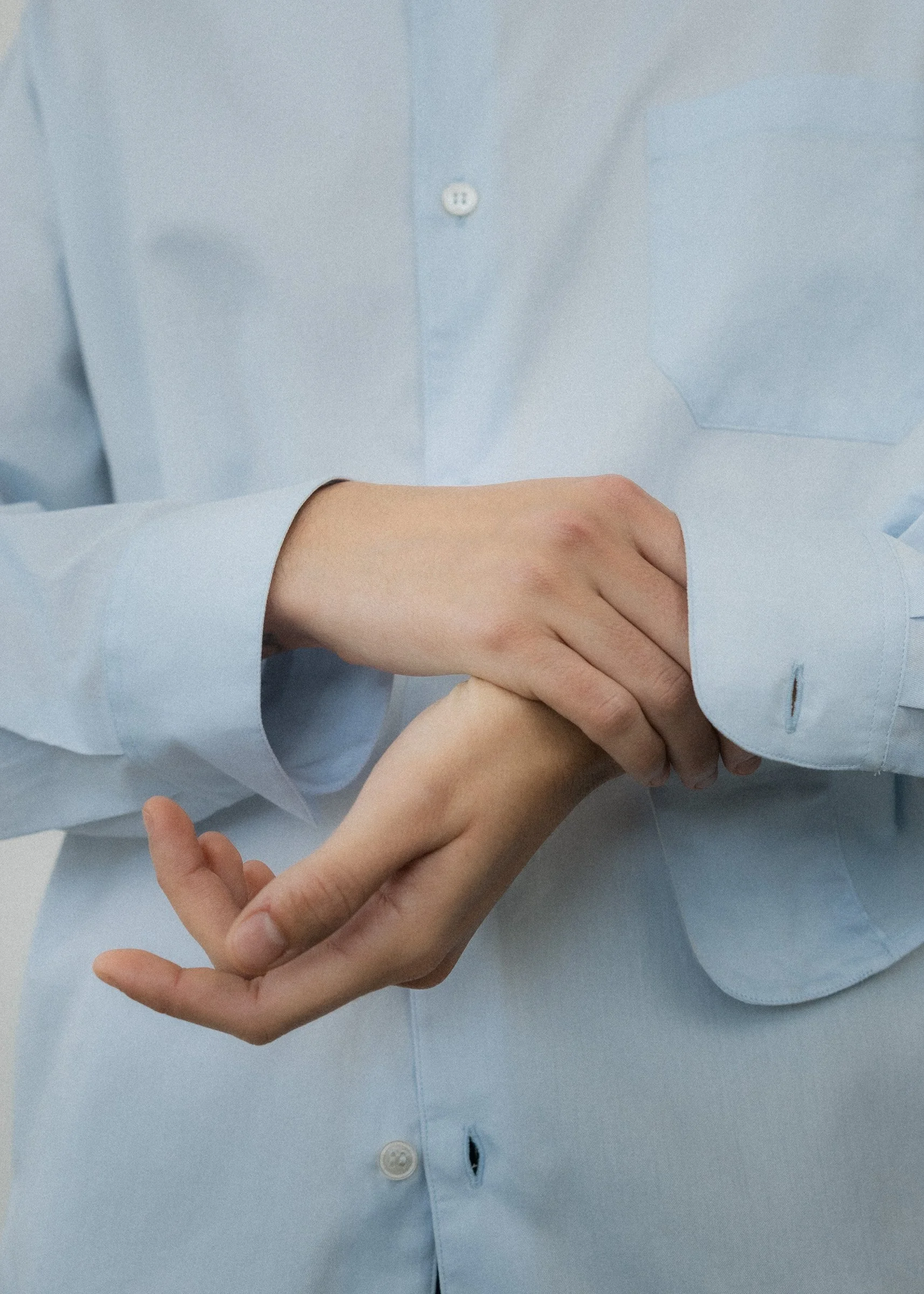 Nick: The pieces that we've made for Lyn are Lyn's uniform. The fabrics that we've chosen are there for a specific reason. Lyn brought in a skater pant that she bought in LA and we tried to take that worn out, beat up, twill for the pant. The shirt is made from the finest cotton you've ever felt. And it's all in blue, of course. You've got a powdered blue shirt, darkest navy, twill, skater pant, and a baseball cat that says soap on it. It was already written, I think. There was no other way to do it. It is really for Lyn. Does it talk about soap in a way? No, it doesn't. It talks about Lyn. It shows my admiration for her. It shows what making a fragrance is all about with someone like Lyn because she's a fucking legend. I think the pieces aren’t really synonymous with Studio Nicholson, they're more synonymous with Lyn. I'm really into it because quite frankly, everyone wants to dress like Lyn. The best products work when they're seen on people. It allows you to immerse yourself into that world. I have no doubt that women have walked into the store and met Lyn and said, "Oh my God, where's your shirt from? Where's your pant from?" That's our truest expression.